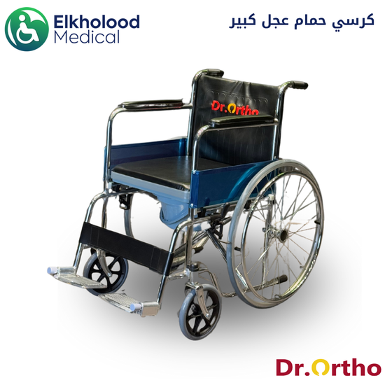 كرسي متحرك حمام مزود بقاعدة بلاستيكية للحمام بعجلات كبيرة لا يمكنه الدخول علي قاعدة الحمام ماركة فوشان